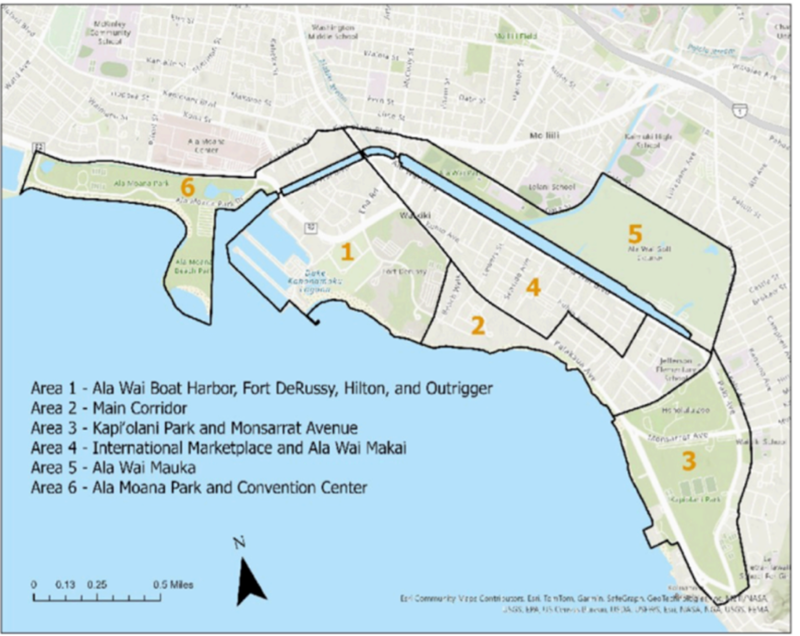 Beginning in 2022, the Waikiki Business Improvement District (BID), City, and County of Honolulu launched the Safe & Sound Waikiki Program which, over the course of three years, realized an 18% decrease in crime and a 78% decrease in the unsheltered homeless population. The Waikiki Safe & Sound Program, in just two years, saw 97 unsheltered homeless people placed into housing, with 16 opting for long-term treatment.
