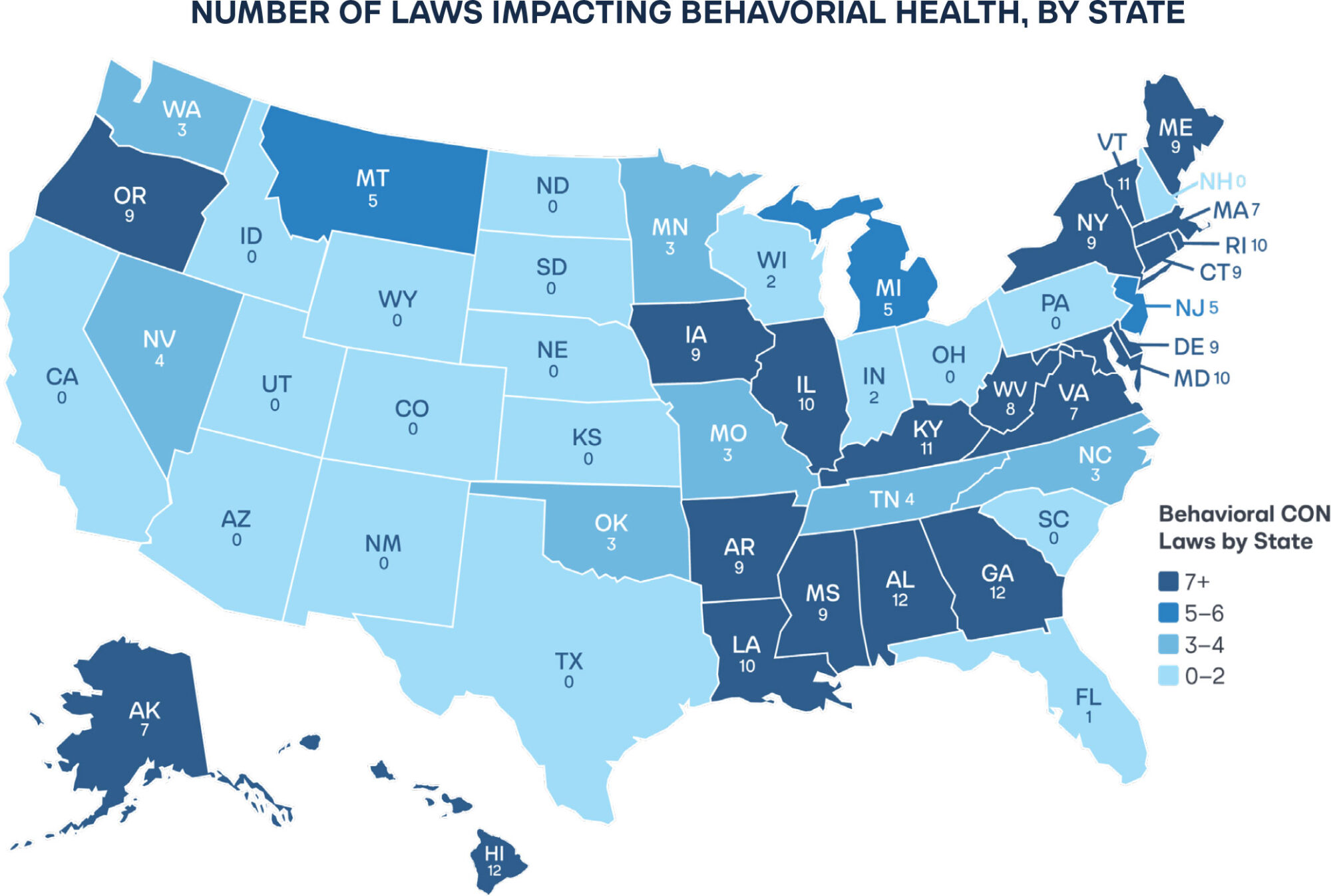Any state with CON restrictions on outpatient facilities for behavioral health, including but not limited to: