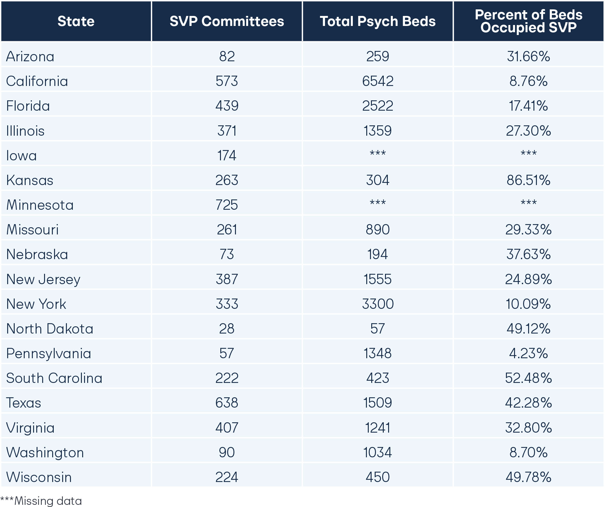 Expanding psychiatric bed capacity through investments in treatment and facilities is the most critical factor in addressing this crisis. But a substantial amount of bed capacity in some states could be unlocked through the redistribution of care for specialty populations like sex offenders.