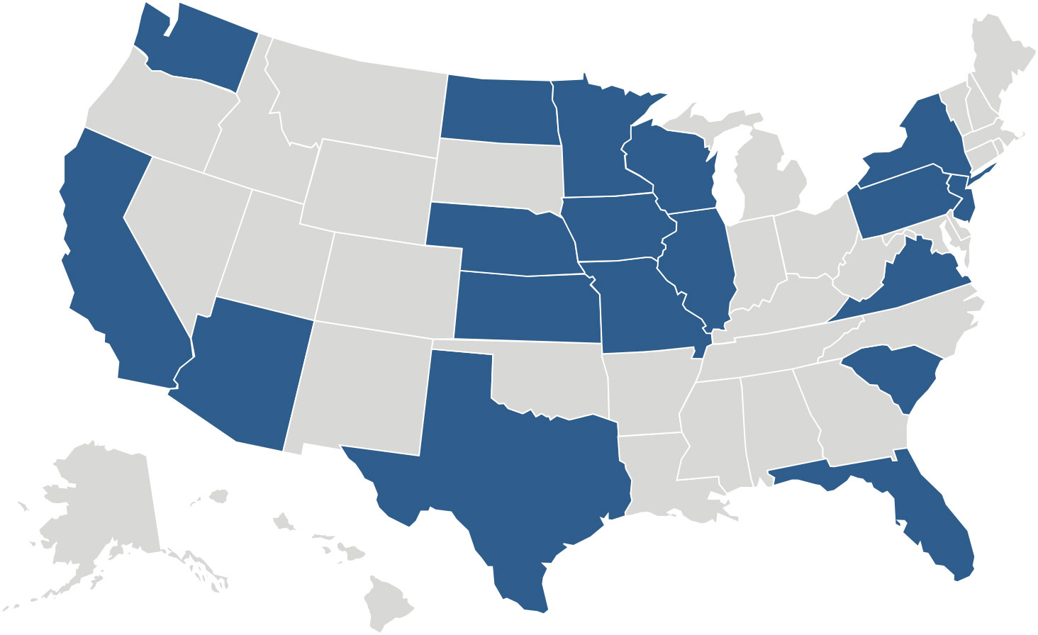 Twenty states have some version of a sexually violent predator law that permits the involuntary civil commitment of certain sex offenders. These states include Arizona, California, Florida, Illinois, Iowa, Kansas, Massachusetts, Minnesota, Missouri, Nebraska, New Jersey, New York, North Dakota, Pennsylvania, South Carolina, Texas, Virginia, Washington, and Wisconsin.12