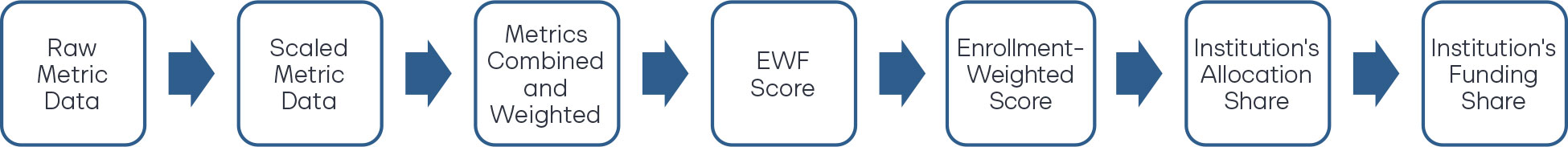 One concern about allocating funding through the performance formula is that variation in yearly outcomes will create unmanageable uncertainty for postsecondary institutions. However, rather than reducing the percentage allocated through the formula, EWF includes enrollment-weighting to keep funds reasonably proportionate to institution size. In addition, states can further smooth out funding by including past funding in the formula, using a three-year rolling average of institutional metrics, or both to reduce extreme variability.