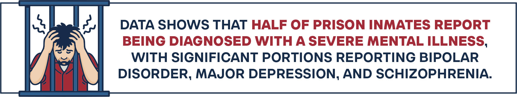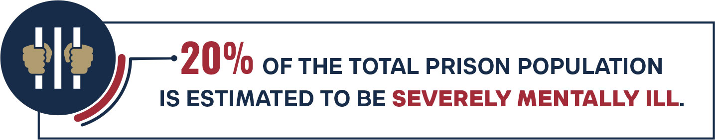 Currently, there are 1,829,000 adults incarcerated in America.40 Estimates range from 20% to 60% of the incarcerated population suffering from severe mental illness.41–42 Using the more conservative 20% of the jail population estimated at 550,000 and the 1,071,000 inmates in state prisons, along with the Federal Register’s estimate for an average yearly incarceration cost of $42,672, the expense of incarcerating the seriously mentally ill exceeds $15 billion yearly.43 This data shows that half (50.2%) of prison inmates report being diagnosed with a severe mental illness, with significant portions reporting bipolar disorder, major depression, and schizophrenia.44 This is approximately 10 times the number within the general population with serious mental illness.45 Further, the National Alliance on Mental Illness’s (NAMI) findings on lifetime mental illness correlate with the deinstitutionalization movement, disability rights movement, and the reduced use of civil commitment to the expansion of the overall prison population.46–47