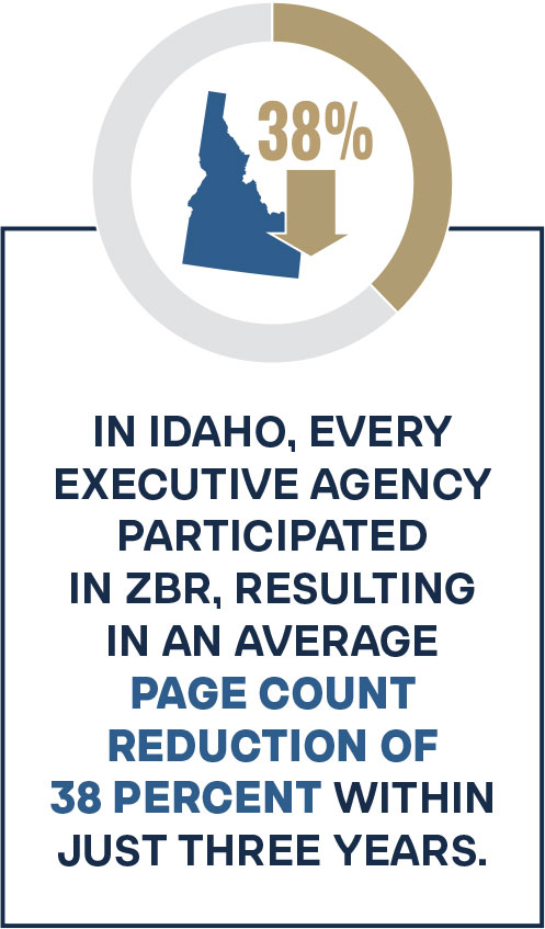 The benefits of zero-based regulation are measurable. In Idaho, every executive agency participated in ZBR, resulting in an average page count reduction of 38 percent within just three years. Beyond streamlining the code, the process also catalyzed deeper conversations with lawmakers about which policies properly belong in rules and which should be enshrined in statute.